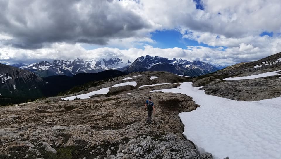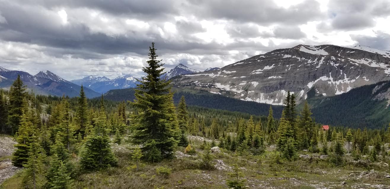 NOBO begin 1.5 km north of Amiskwi Pass by hiking steeply on good trail (+200m over 1 km) to reach Amiskwi Lodge at the tree line, where the trail ends and 5 km of stunning cross-country ridge walking begins. Camping is not allowed at the lodge, please do not trespass on private property. Camping is available in the meadows 200 metres farther.