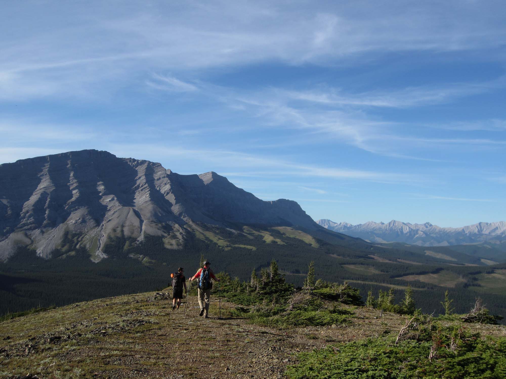 Back down into Casket Creek valley, you’ll find a junction with the Sheep River trail and an exit to Grande Cache in Alberta. This 45 mile (72 km) unmaintained trail through the Wilmore Wilderness, has a few significant fords, but ends in town and full services.