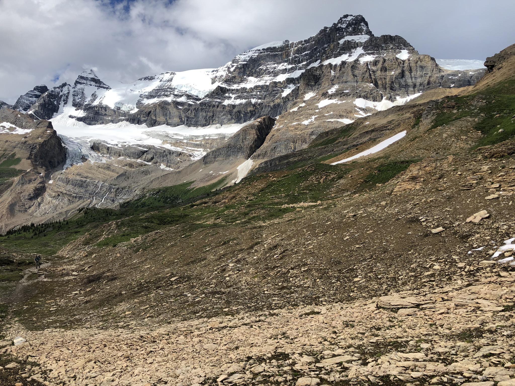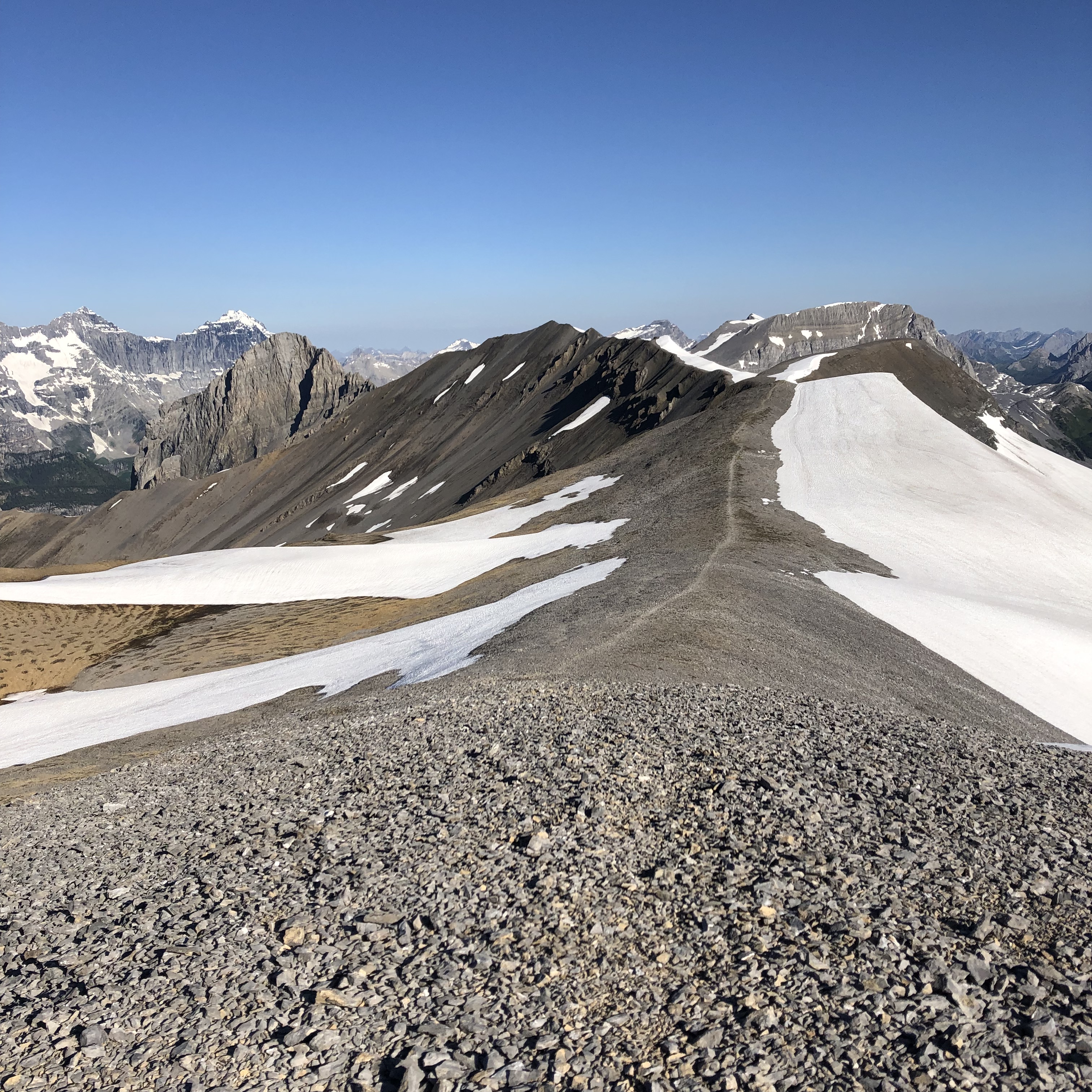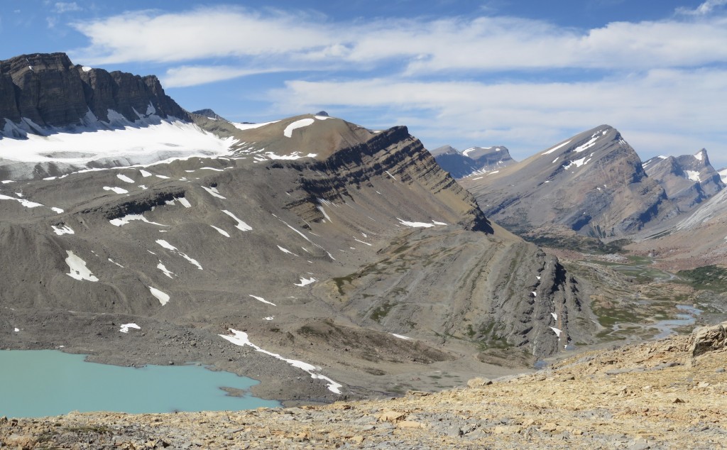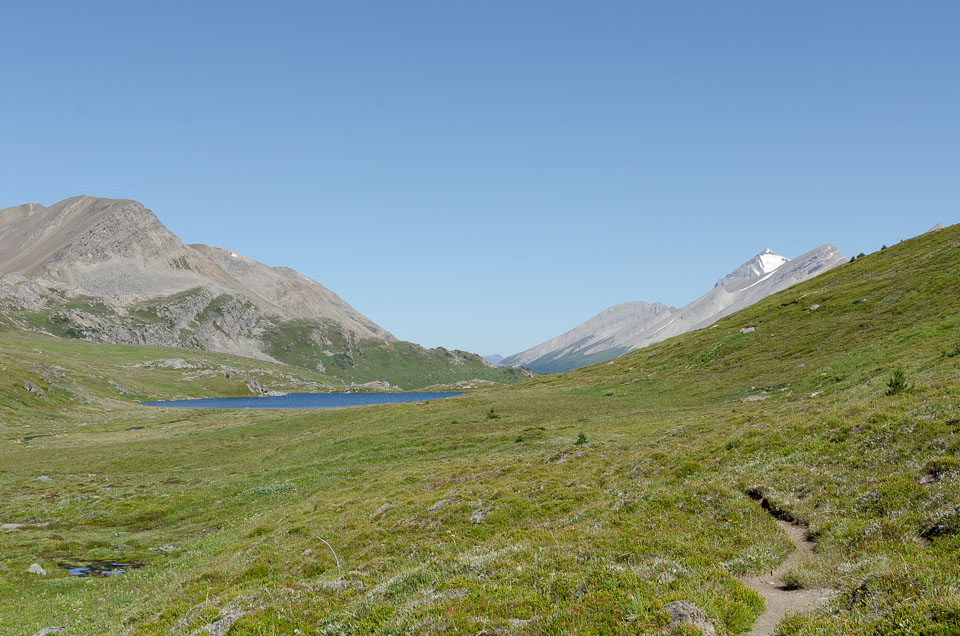 The trails rejoin each other at Big Shale Hill and closely parallel the Great Divide for several miles with an optional side trip to the summit of Mount Talbot. Staying up high, the trail heads over Morkill and Fetherstonhaugh Passes.