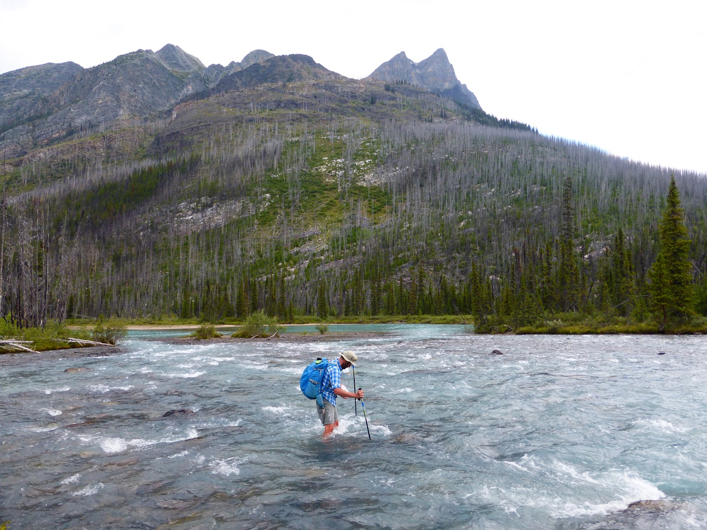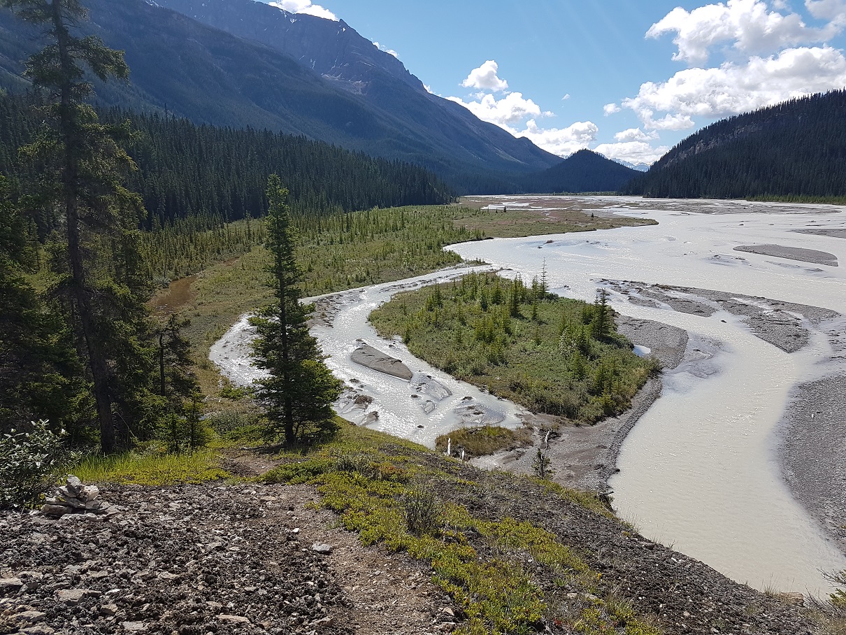 There is a small route change at Conway Creek where the trail heads towards the Howse floodplain. Rather than fording Conway Creek back and forth, the route stays on the north side of the creek avoiding the two fords of Conway Creek.