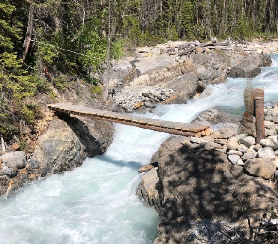 DAMAGEDBRIDGE – Chown Creek bridge (g2) was damaged by extreme flooding last year and only a portion of the bridge remains. If the creek is impassable, NOBO hikers can bushwhack in the forest on the south bank of Chown Creek and reconnect to the GDT about 3 km upstream. SOBO hikers should not ford Chown Creek.