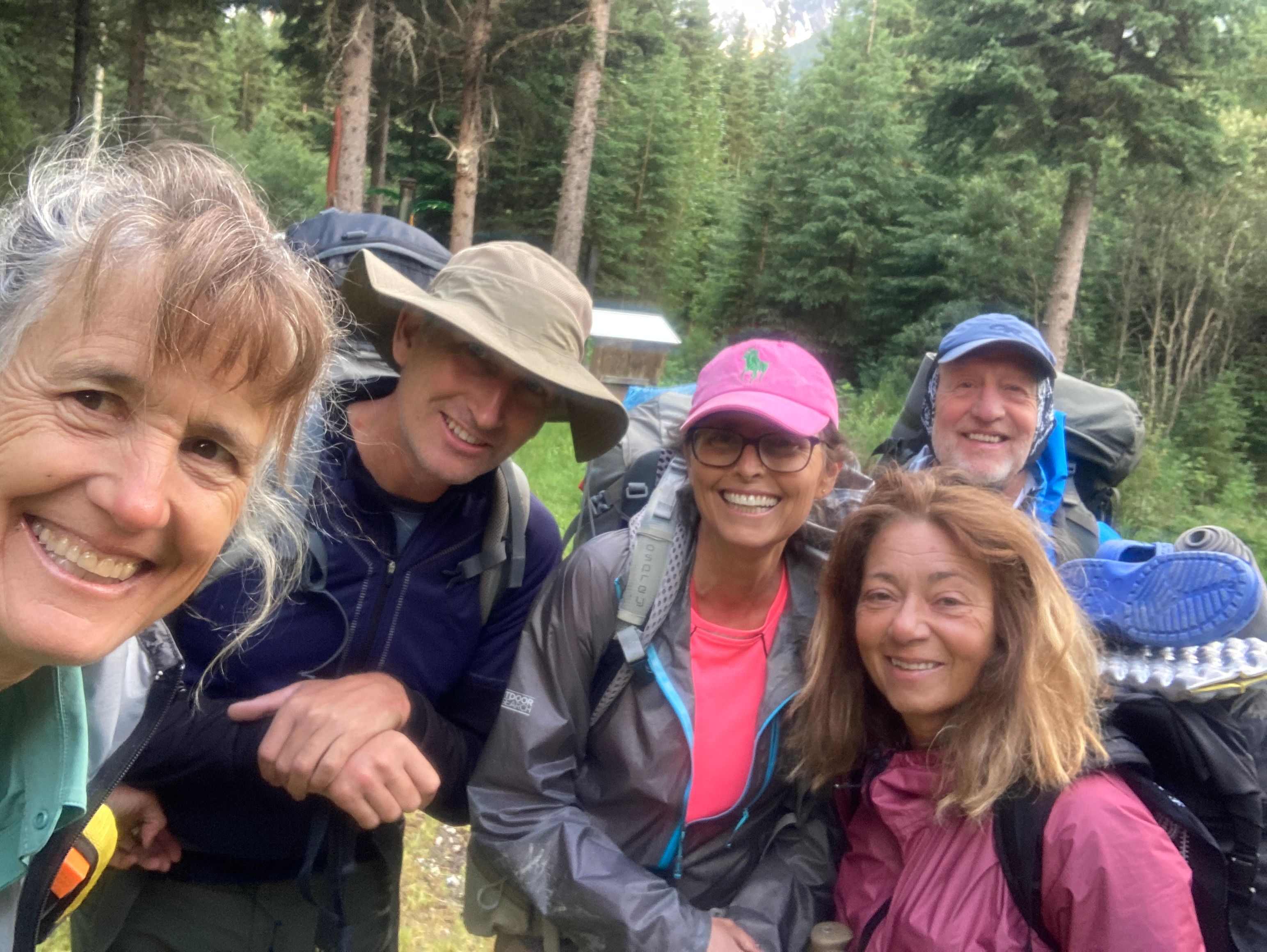 Day 1 – The start. Left to right – Lynnie, Dustin, Barb, Christine, Terry