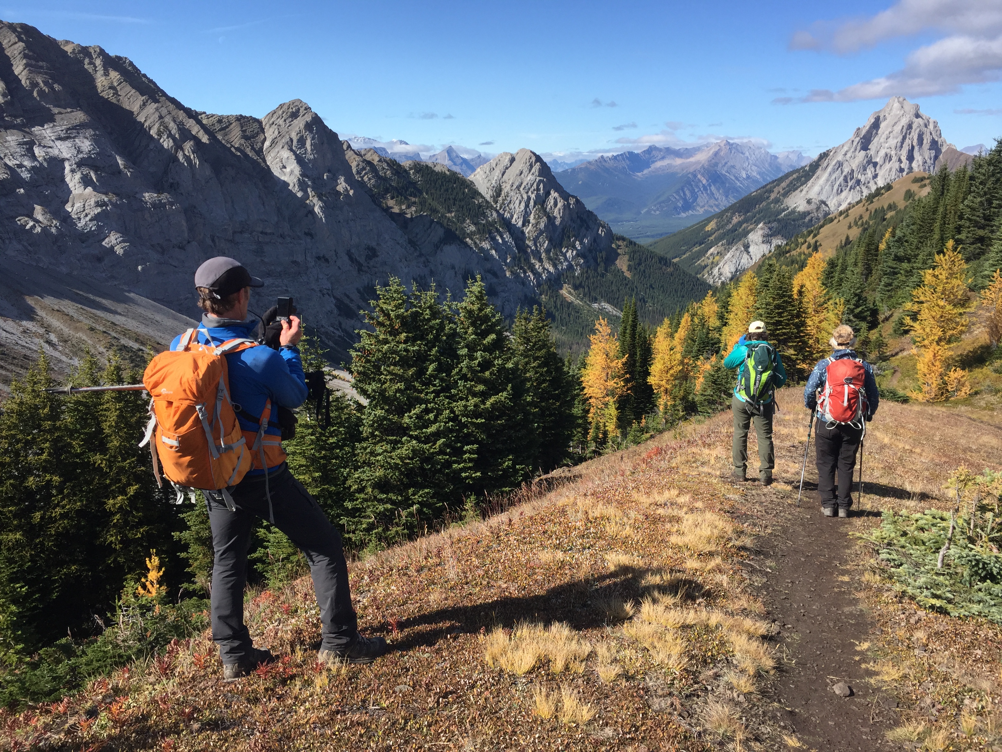 Yo–yo hikers Dan Durston and his wife Tara Frey-Durston from Golden, BC thru-hiked the GDT from Waterton to Kakwa(northbound or NOBO) and back again (southbound or SOBO) in one season in 2017, so I asked them for their recollections about the larch they saw along the GDT. Here is what Dan had to say:“We missed the prime larch season on our yo-yo because we had to stop the hike just as the larches were starting (early September) due to fire closures, and then didn’t resume until the end of October when they were largely over. However, I did notice some nice subalpine larch in a few areas and Tara also mentioned some nice areas from her SOBO hike last September.