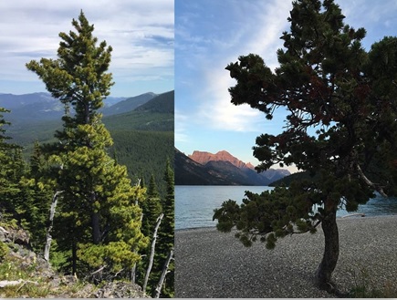 Pine Shape Quiz: Can you tell which tree is the lodgepole pine and which one is the whitebark pine? (Answer at the end)