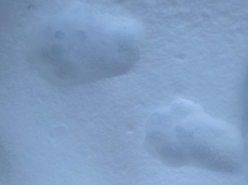 The characteristic “ice cream cone” shape indicates lynx tracks in deep snow.