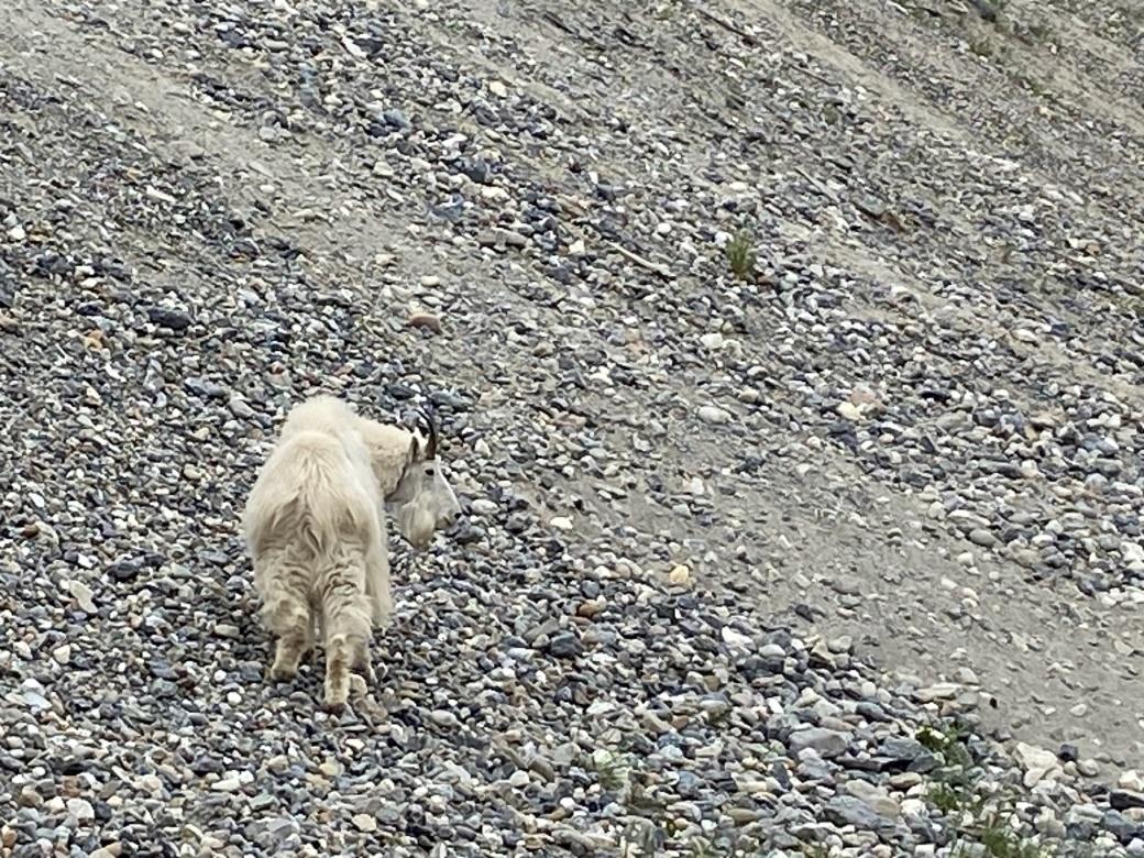 Mountain goat in on Mount Wardle Kootenay National Park with its characteristic long thick coat.
