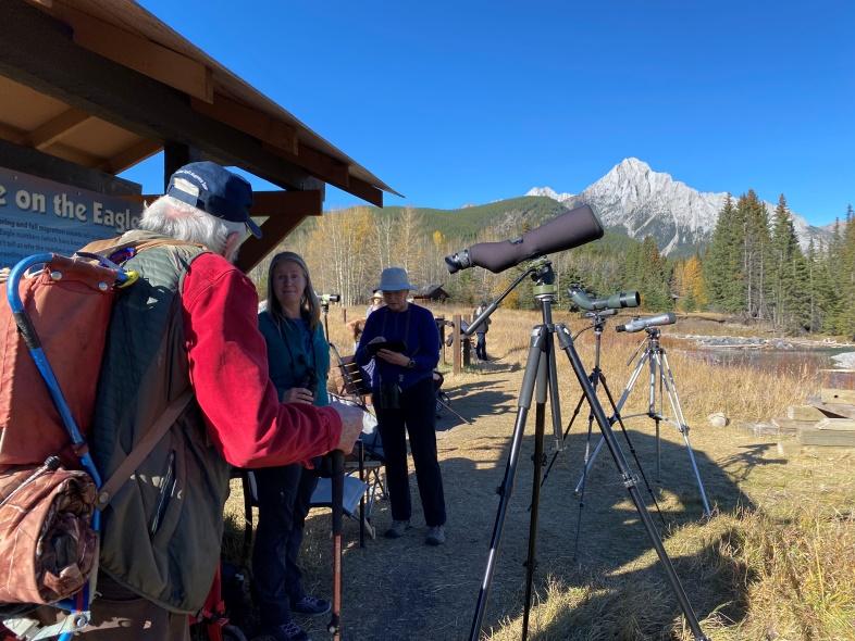 RMERF volunteers at the eagle watch site near Mount Lorette in Don Getty Provincial Park documenting migrating raptors in October 2022, the 30th year of the count.