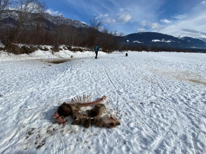 Rocky Mountain elk carcass in February 2022 along the Columbia River near Brisco, B.C.