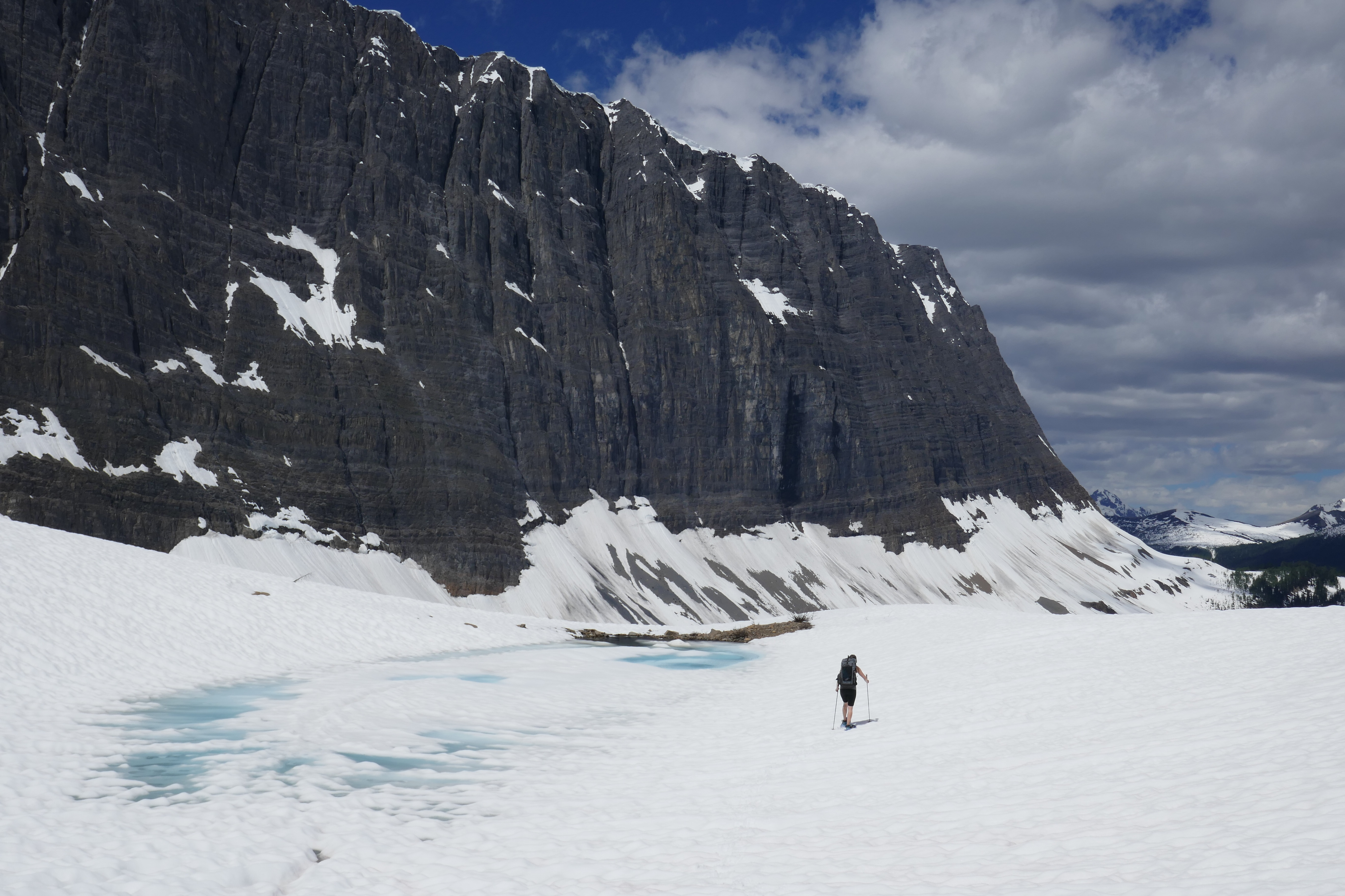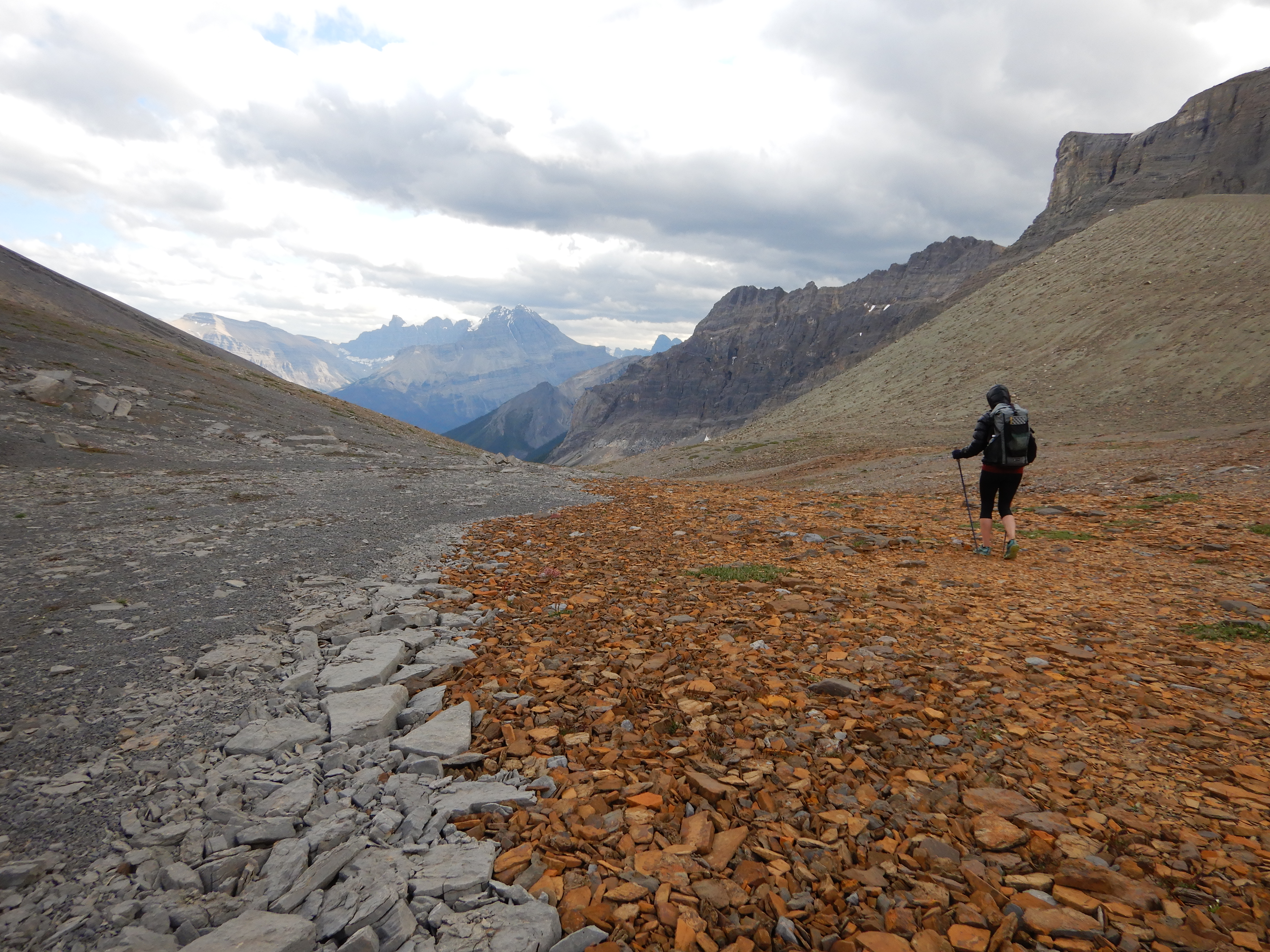 The first day is very straightforward… there is a pretty clear trail all of the way. Picture of South Kananaskis Pass. We spend the night at Beatty Lake Campground in B.C., which is lovely! It’s on the lake, there are bear lockers and a few tent pads.