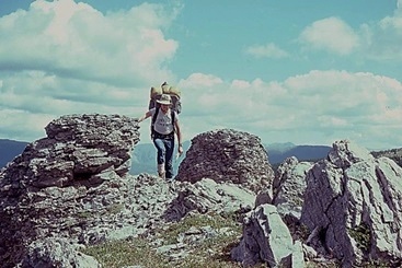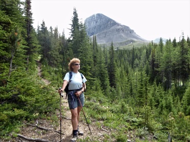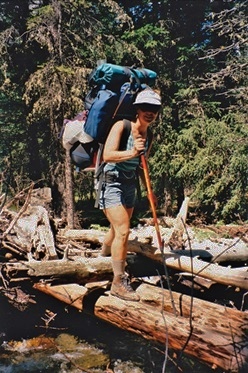 Jenny Feick backpacking through Valley of the Rocks, Mount Assiniboine Provincial Park, B.C. in 2010 (Photo by Ian Hatter)