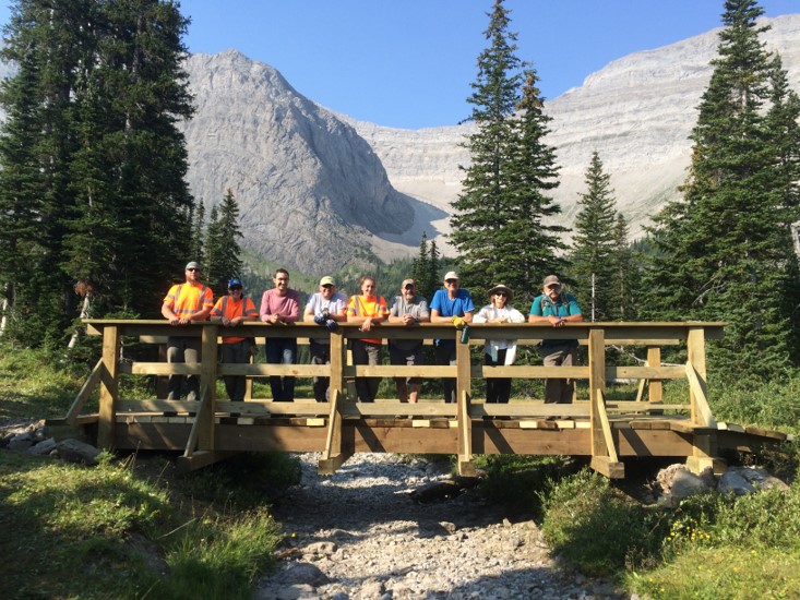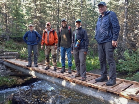 A new bridge was installed across Baril Creek on the Original GDT in Section B. A self-supported backcountry crew replaced the temporary log bridge and completed trail maintenance work up to Fording River Pass and from Baril Creek to just over the ridge to the south.