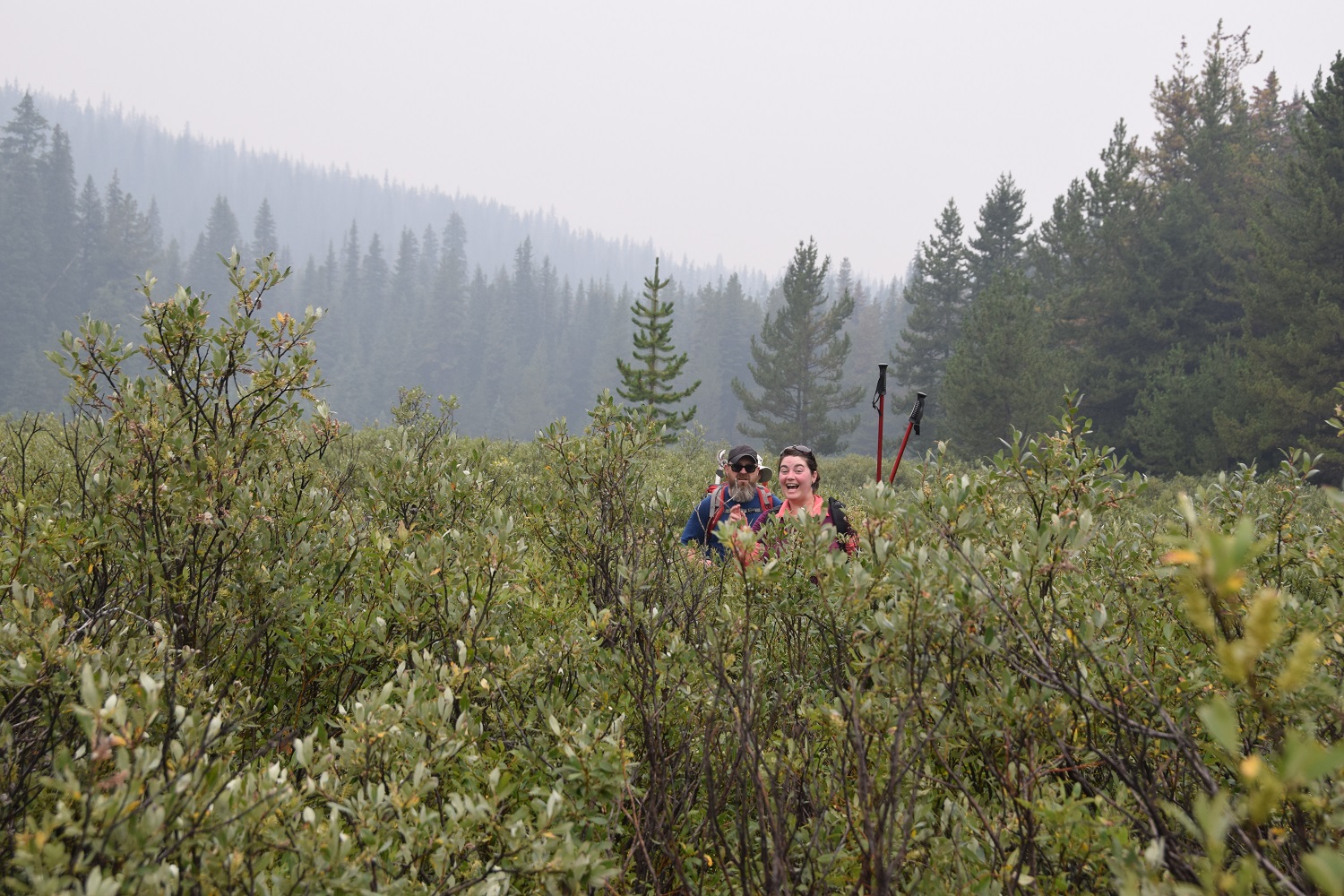 Our second annual work trip on Maligne Pass/Trapper Creek Trail in partnership with the Jasper Trails Alliance was a huge success. A cumulative 126 hours from 21 volunteers created a corridor through a field of impenetrable willows, sightlines cleared a densely vegetated area between the willow field and Trapper Creek Campground and all small deadfall on the incoming trail was removed.
