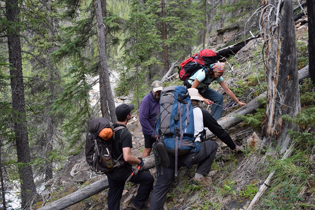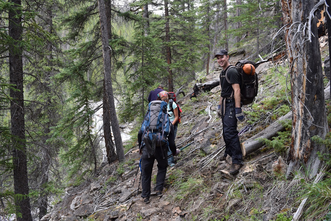The final days of work saw the teams continue the clearing and building of new corridor and trail tread as well as helping the Alberta Parks crew put the sills in for the new Fred bridge.