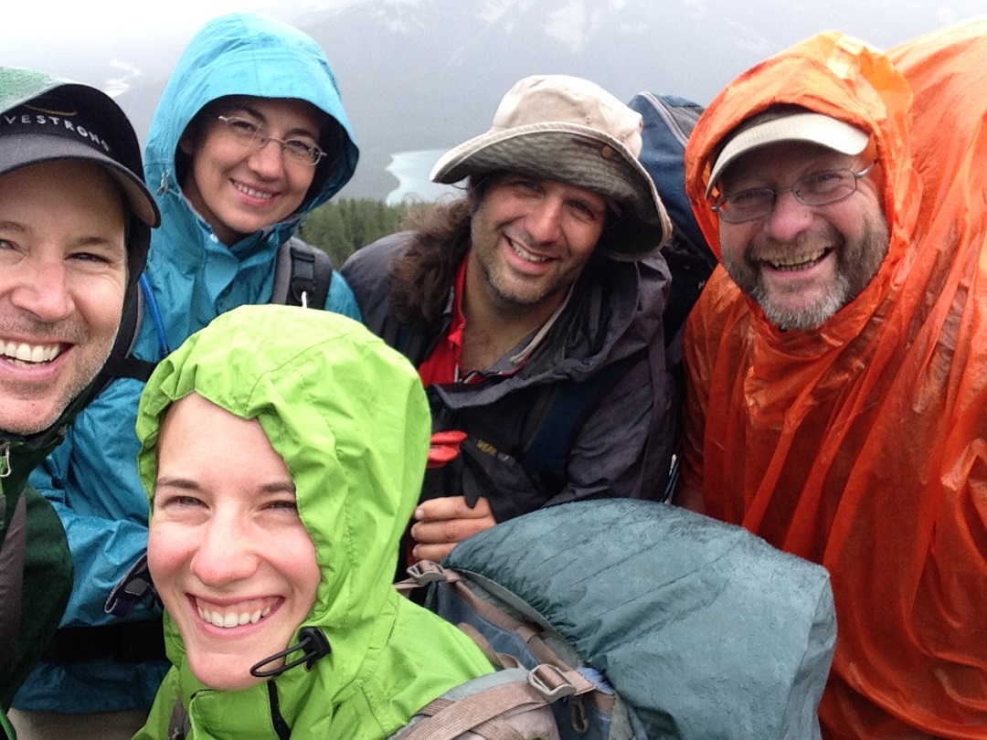 June Scouting Trips – In June, our scouting crews covered a lot of ground by both quad and foot. They scouted and tested new access routes and assessed four bridge building sites. On foot they bushwhacked the same routes multiple times, sometimes on steep slopes with heavy brush on the lower elevations and almost thigh deep snow on the ridge tops. In the end they had mapped and flagged a 3 kilometre route for the 2017 trail crews. Eight additional kilometres were scouted and roughly flagged for future construction. At night the scouting volunteers rested their weary bodies around the warm campfire and discussed future planning. Even though the weather was often cold, windy and wet they always had a smile on their faces.