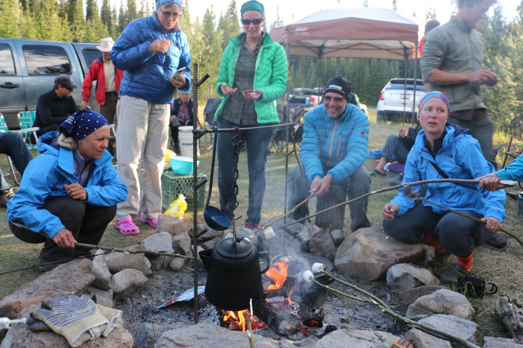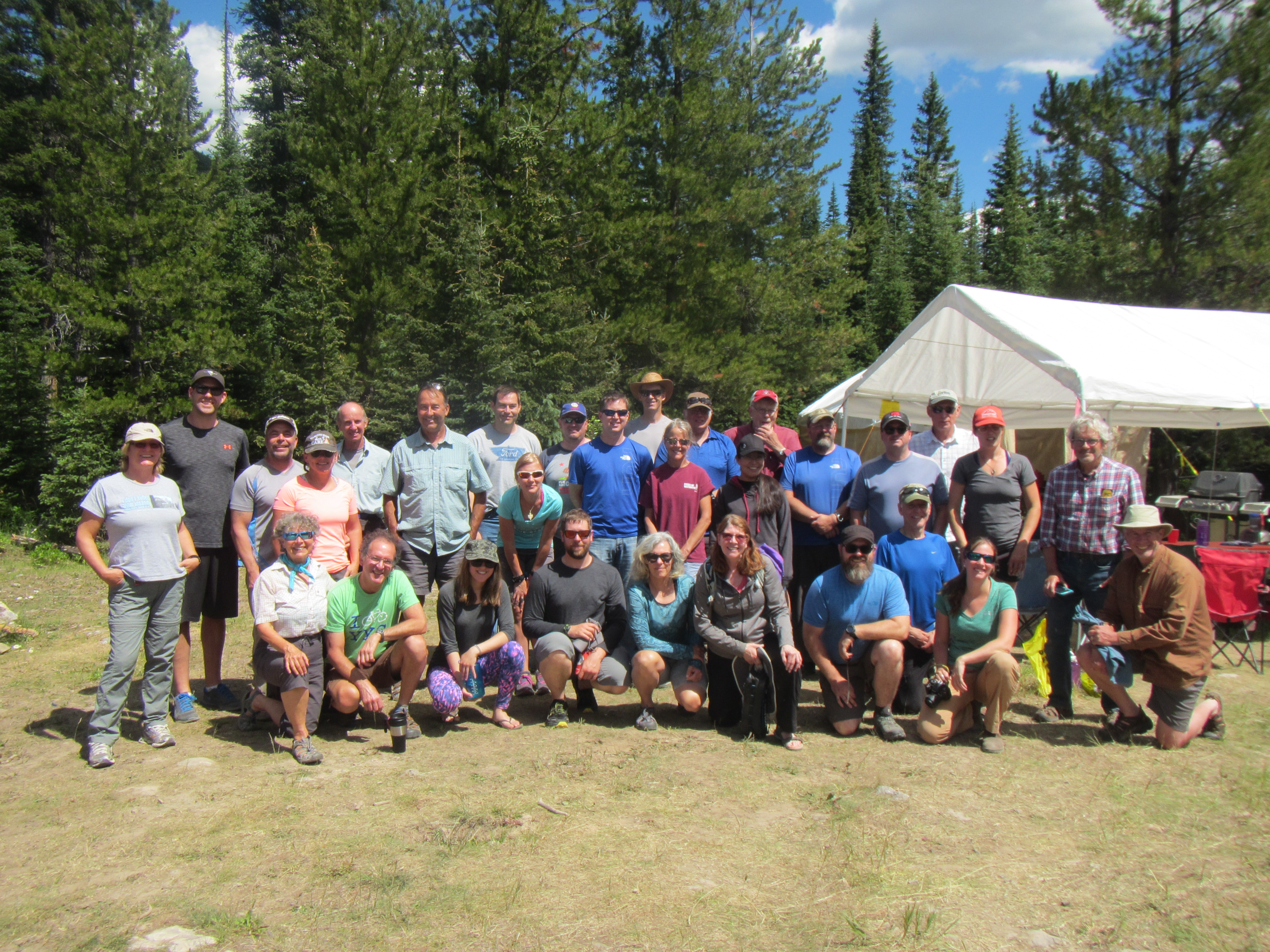 During the day much knowledge of native plants and flowers was shared with the group by a crew member well studied in the field. It seemed like there was at least one outdoor plant expert on each of this year’s crews willing to share their knowledge and the other team members soaked it up. Back at camp each night, the crew members on this group were privileged to be in the company of three of the original GDT surveyors that had spent a full summer together in the early 1970’s scouting and laying down the original route. Their pictures and adventurous storytelling kept many of the team up way too late. This crew worked extremely hard during the day and at night bodies were sore. Luckily there was a yoga instructor among them and the nightly stretching sessions made getting out of bed the next morning an easier chore. This was a GDTA Signature Trip so all the food was supplied and meals planned. The well thought out meals were amazing, fresh, nutritious and plentiful. The cooks worked extremely hard preparing and managing this task as well as working side by side with the other crew members on the trail all day. Their energy and upbeat tempo inspired others on the crew.