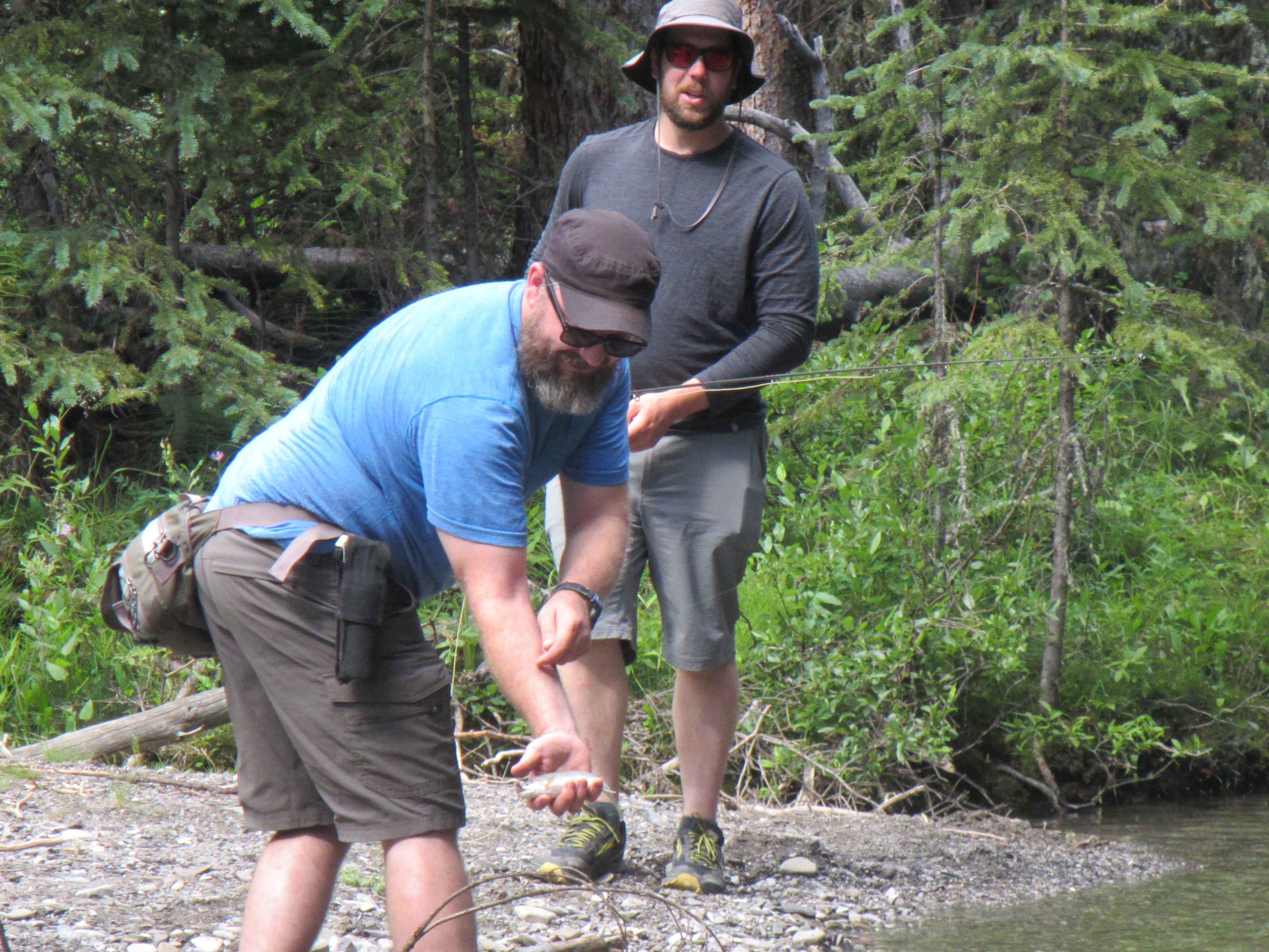 On changeover day, the crew again split up with about half venturing out for a stroll on the 8 km of new finished and rough cut trail to see the totality of what had been done to date. Others found a great fishing spot on the creek and were given fly fishing tips. A half a dozen trout were caught and released.