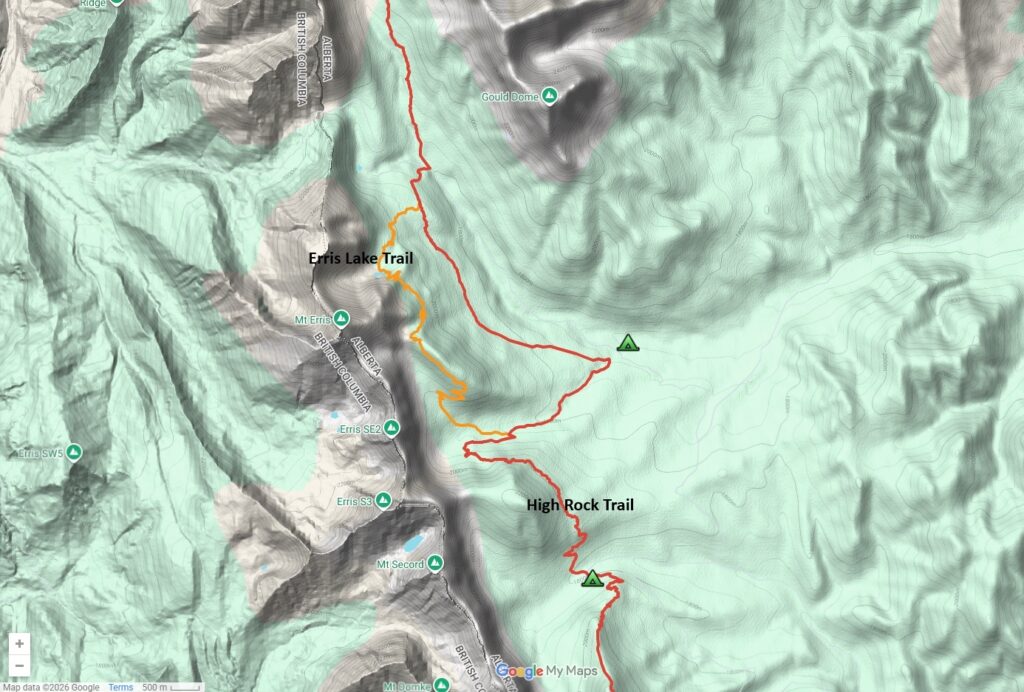• The new Erris Lake Trail is now available as an alternate on the north end of the High Rock Trail.