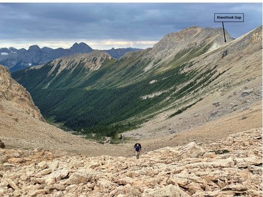Hiking up to Kiwetinok Pass [notice Kiwetinok Gap top right that we just came down!]