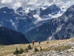 The other alternate route that we did was the Kiwetinok Alternate and I can’t rave enough about this… First the bad news… it’s a tough go with a lot of elevation gain, loss and gain again in a short distance. The toughest part of this alternate for me was the Kiwetinok Gap which really surprised me. It gets very steep near the top of the gap and then over the top there’s a nice walk down a dry river bed until you have to find the very steep, very faint trail (looked like a bear trail to us) through the trees to get down to the meadow. The immediate hike up to Kiwetinok Pass is more demoralizing than difficult! Going SOBO, there is good trail with flagging when you first start the alternate to above the trees on the approach to the Gap and again on the way down from Kiwetinok Pass (thank you Parks Canada!). In between these two areas, you’re a bit on your own (or with GPS). And if you happen to do the alternate northbound, make every attempt to walk backwards up towards Kiwetinok Pass or turnaround often – the views are spectacular!! [NB:  Kiwetinok Pass alternate is not safe in early season due to a cornice that forms on the north side of Kiwetinok Gap.]