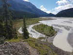Follow the game trail for 750 metres until the main river channel turns northwest allowing hikers to return to the floodplain. Head NNW staying on the east side of the floodplain. Early in the summer, the Howse River might be in flood making the floodplain difficult or impassable beyond this point; if so hikers should consider using the old trail which is 150 metres bushwhack east of the river’s edge.