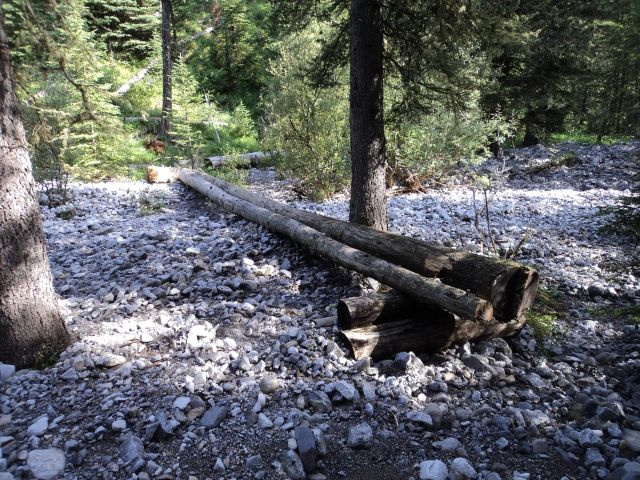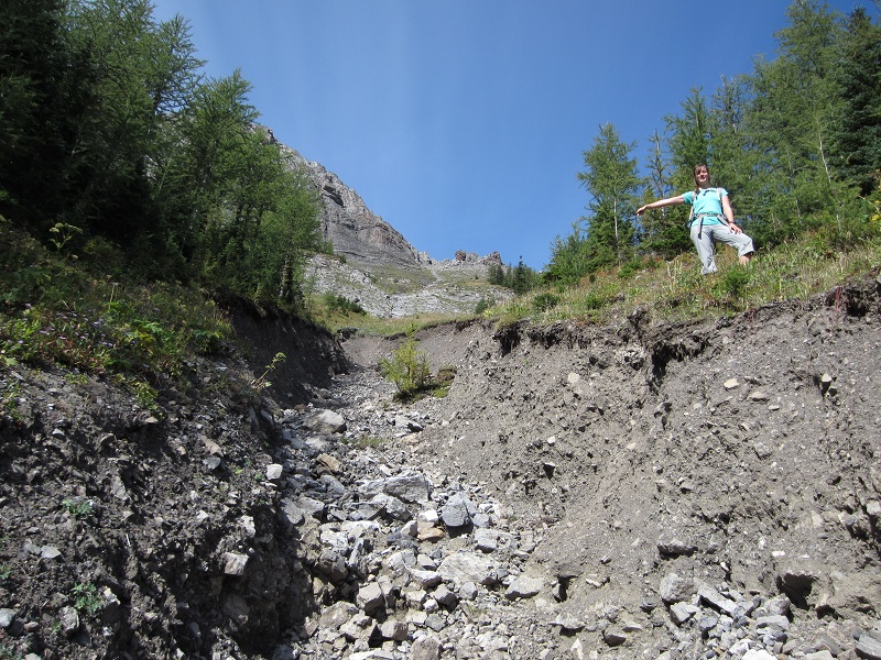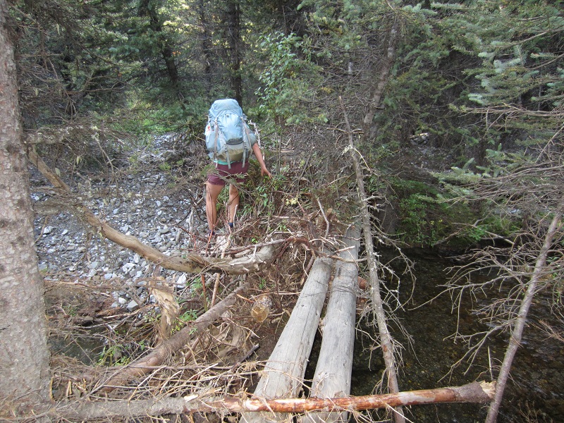 From August 30 to September 1, 2013, three members of the Great Divide Trail Association hiked from Hidden Creek to Baril Creek, assessing damage to the GDT caused by the extreme flooding. In general the GDT in this section is still in good shape and hikeable but most creeks show some signs of severe flooding and associated damage, e.g. rock and tree debris, mud deposits and in a few extreme cases complete re-routing of the water channel. Several bridges have washed away but all creek crossings can still be forded. There are a few short sections where the trail has washed away but detours exist where necessary.