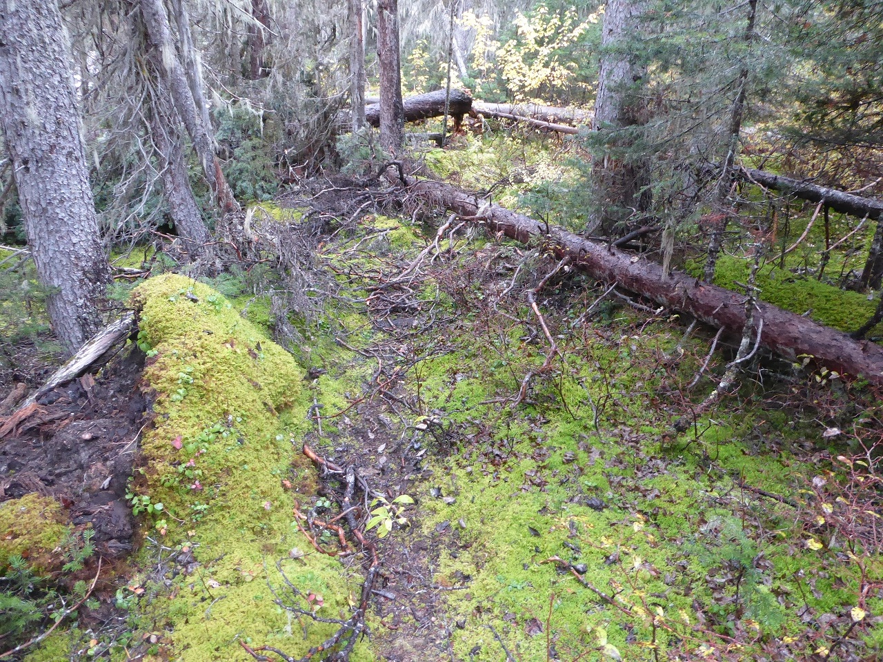 The story on the Alberta side, in Banff National Park, wasn’t much rosier. Flooding didn’t affect the trail so much as official indifference; Parks officials decided the Howse Pass trail was no longer deserving of attention, and that it would be left to revert to a natural state – i.e. to disappear. Strong winds, not unheard of on the eastern side of the Divide, seemed to be in agreement with this strategy and long stretches of the trail soon resembled a giant’s game of pick-up-stix.