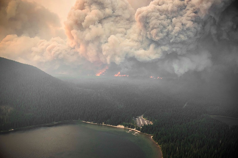 On July 16, strong winds intensified the wildfire and it spread quickly into Mount Assiniboine Provincial Park. 85 fire crew personnel, 40 pilots, 35 support staff were brought in to fight the wildfire. A significant amount of smoke was produced by the wildfire, filling the Bow and Columbia valleys, resulting in poor air quality advisories as far away as Calgary.