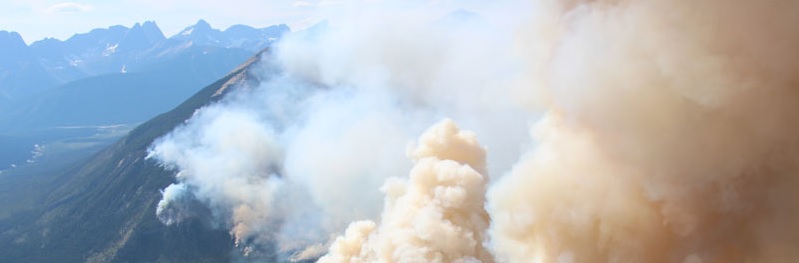 The Kenow Wildfire was started by lightning strikes on August 30 on the slopes above Kishinena Creek in British Columbia’s Flathead Valley. Due to a period of unusually hot weather and high winds, the fire grew quickly and by September 2 it had expanded east 7 kilometres towards the Alberta border to a size of 4,500 hectares.